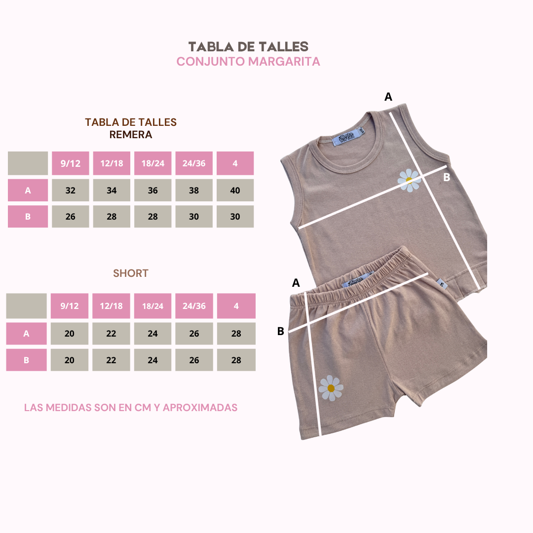 / Agarrá una remera y un short que le quedé perfecto a tu bebé, medilo y compara las medidas con nuestra tabla de talles para saber cual es el indicado.